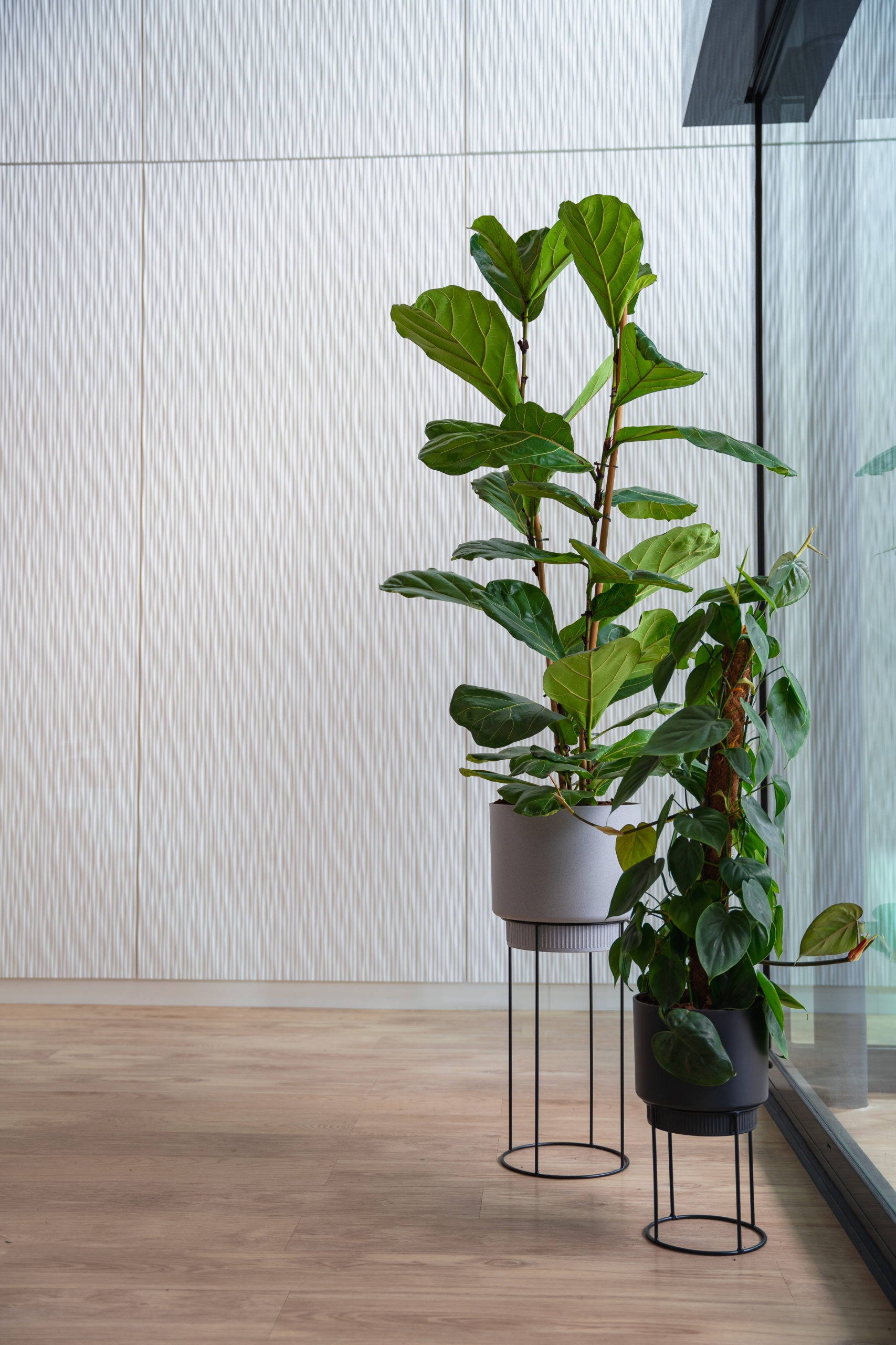 Le contraste entre les surfaces vitrées et les matières naturelles offre un équilibre entre modernité et confort, reflétant l’esprit du projet : fonctionnel, élégant, et intemporel.
