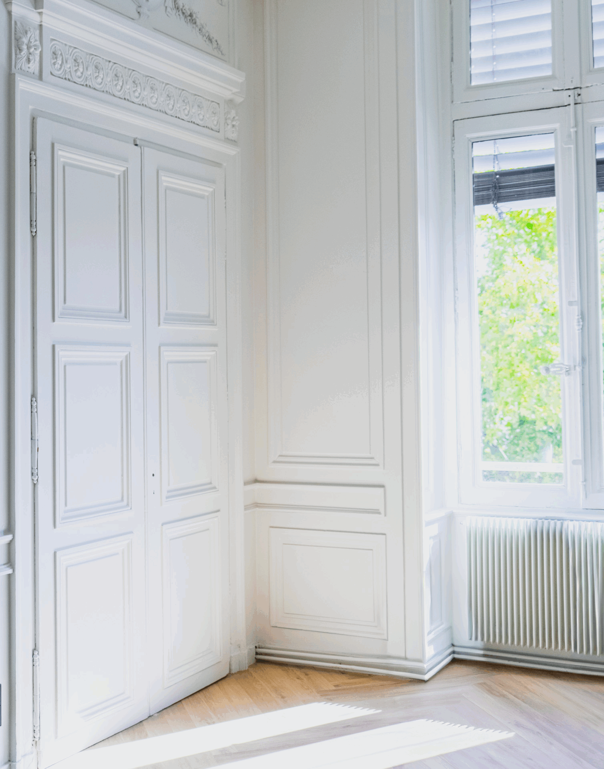 Les grands volumes mettent en valeur les moulures d’origine, complétées par de nouvelles pour renforcer l’identité des lieux. Ce travail de détail combine authenticité et modernité.